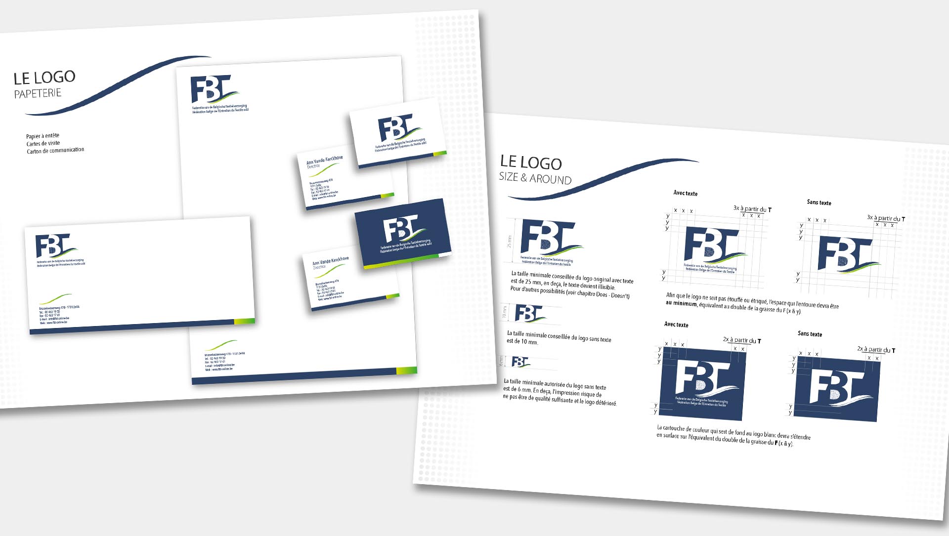 Après de nombreuses années passées avec leur logo devenu désuet, la FBT nous a chargé de refondre leur logo dans une version plus moderne. Le client nous a également demandé de penser une charte graphique reprenant l'utilisation du logo dans divers support, mais aussi ses caractéristiques propres. Le logo a ensuite été décliné en enseigne, lettrages et en relief.